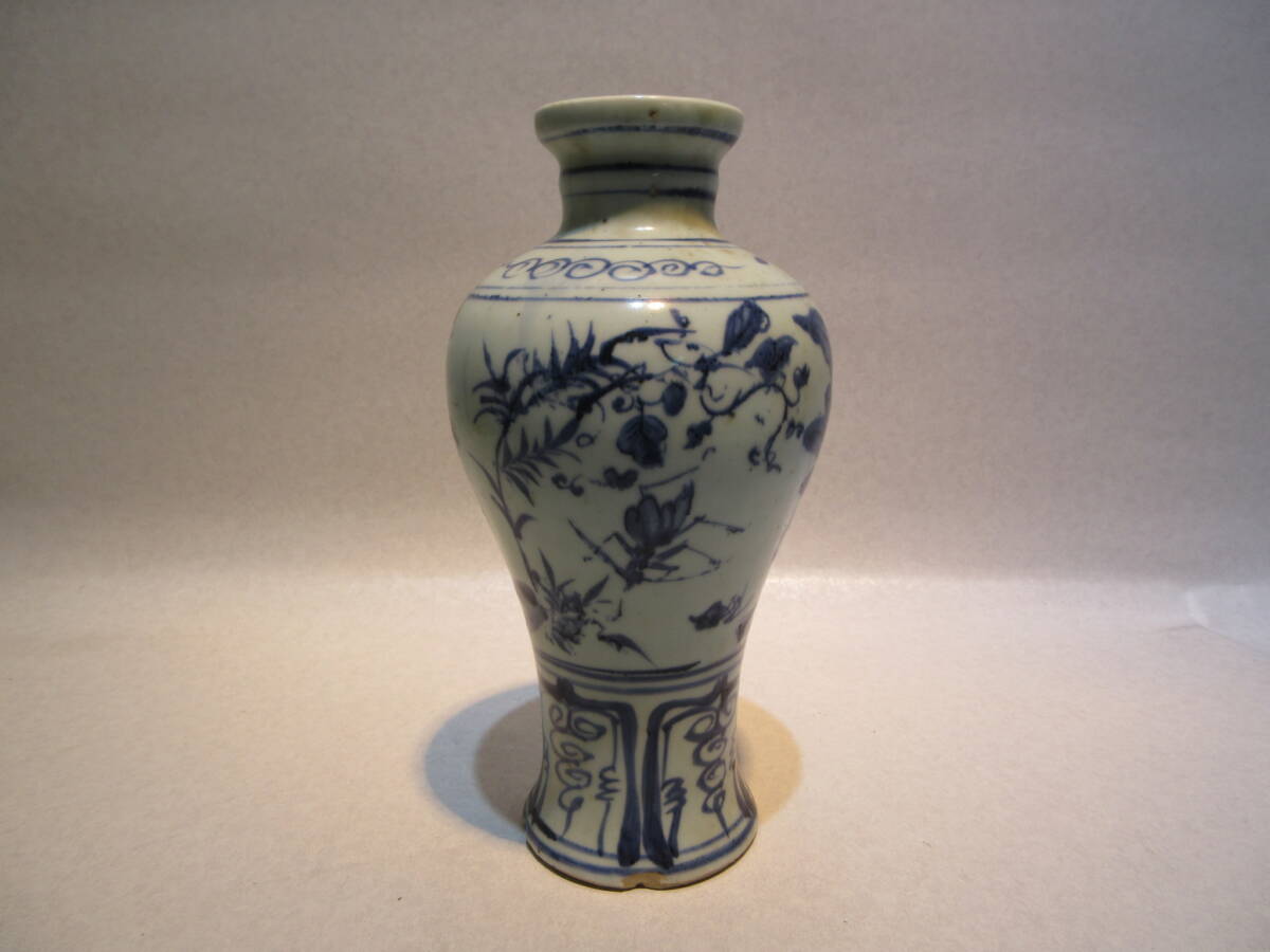 - T2527 中国美術 元時代 青花草花昆虫文瓶 元箱 唐物 古玩