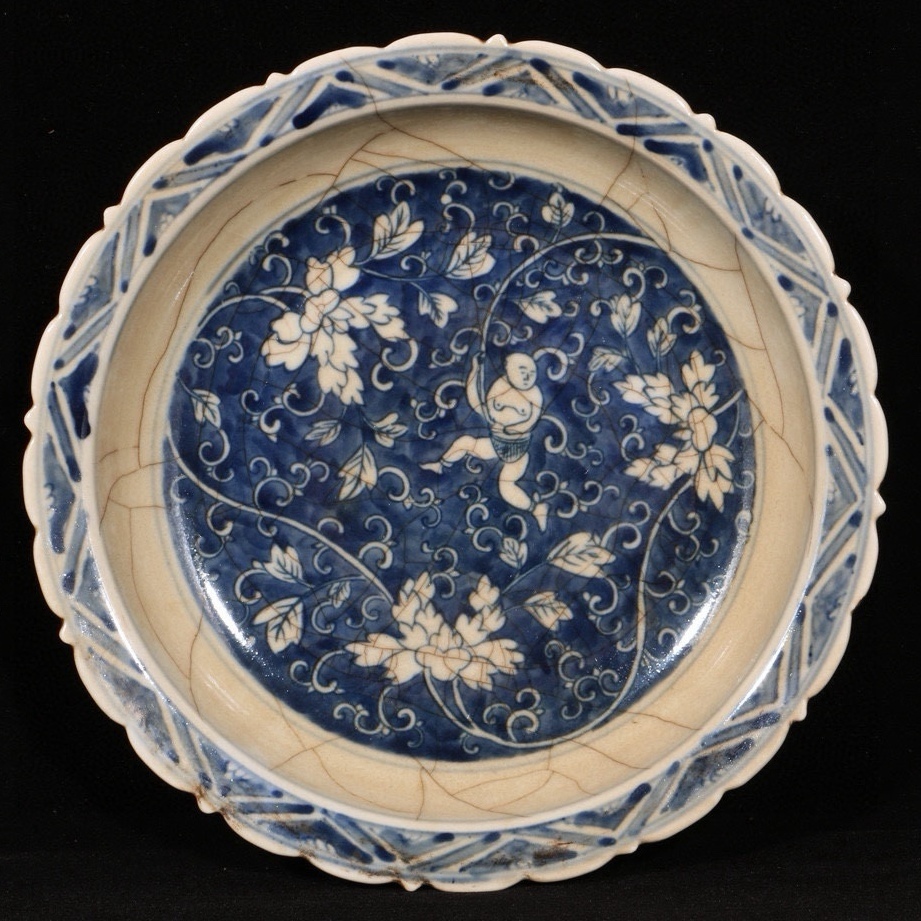 - 旧 清康熙 青花 嬰戯図盤 唐磁 古陶磁器 陶芸 中国古美術 古賞物 古置物 唐物 S710