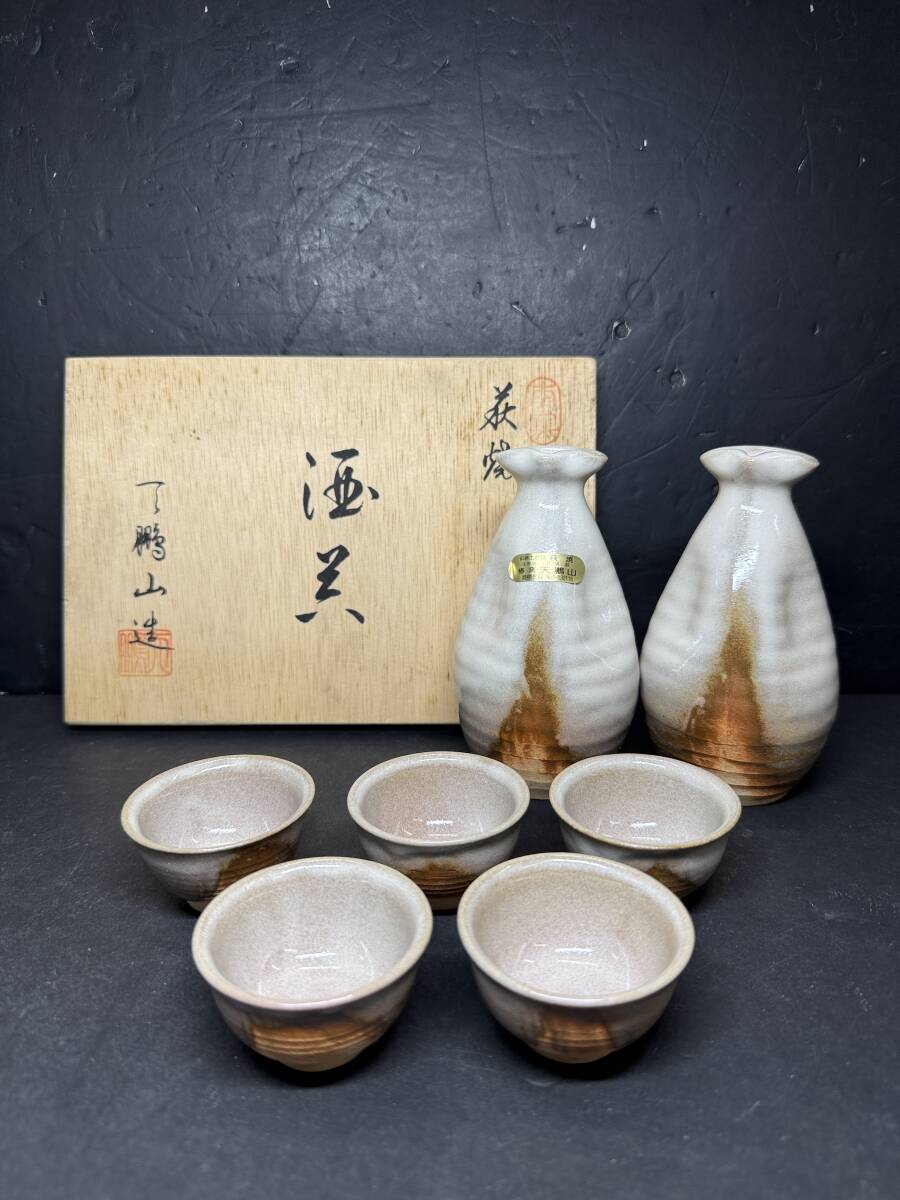> ★コレクター必見 未使用品 萩焼 天鵬山造 窯変酒器 お猪口 徳利 おちょこ 盃 陶芸 工芸 共箱 GT603