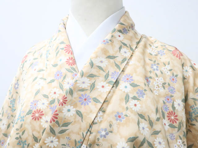 > 《古美術京松》リサイクル着物 小紋 花 正絹 身丈約166cm 裄丈約66cm kyo7z09-1007
