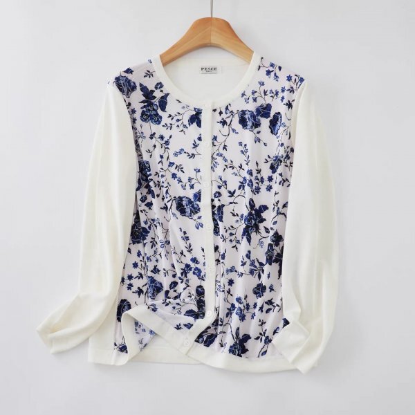> wnm 綿50%テンセル50% カーディガン 羽織物 アウター チュニック トップス ニット セーター フリーサイズ ゆったり 前身頃花柄生地5