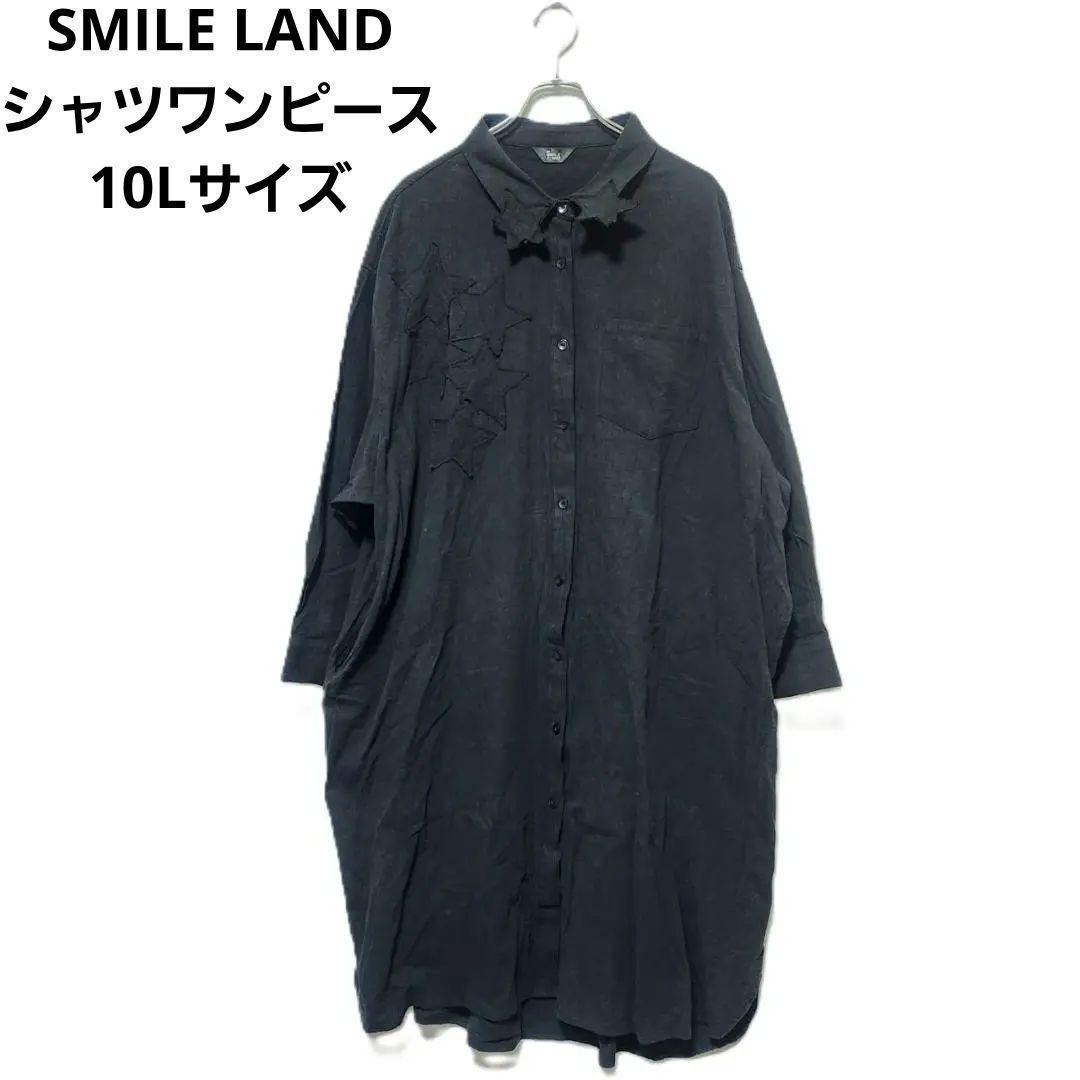 - SMILE LAND シャツワンピース 星刺繍入り 黒 綿 10L おしゃれ