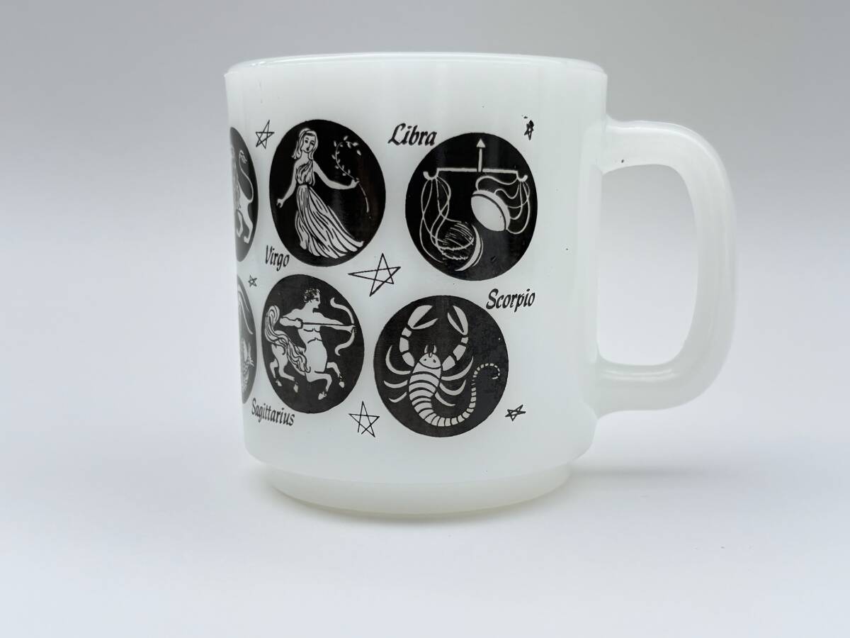 > ヴィンテージ 星座 ミルクガラス コーヒーカップ マグカップ キッチン用品 コレクターズアイテム 不透明 ホワイト レア