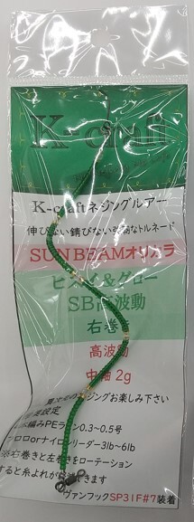 - K-craft☆ネジングルアー サンビームオリカラ ヒスイ&グロー SB高波動 右巻き