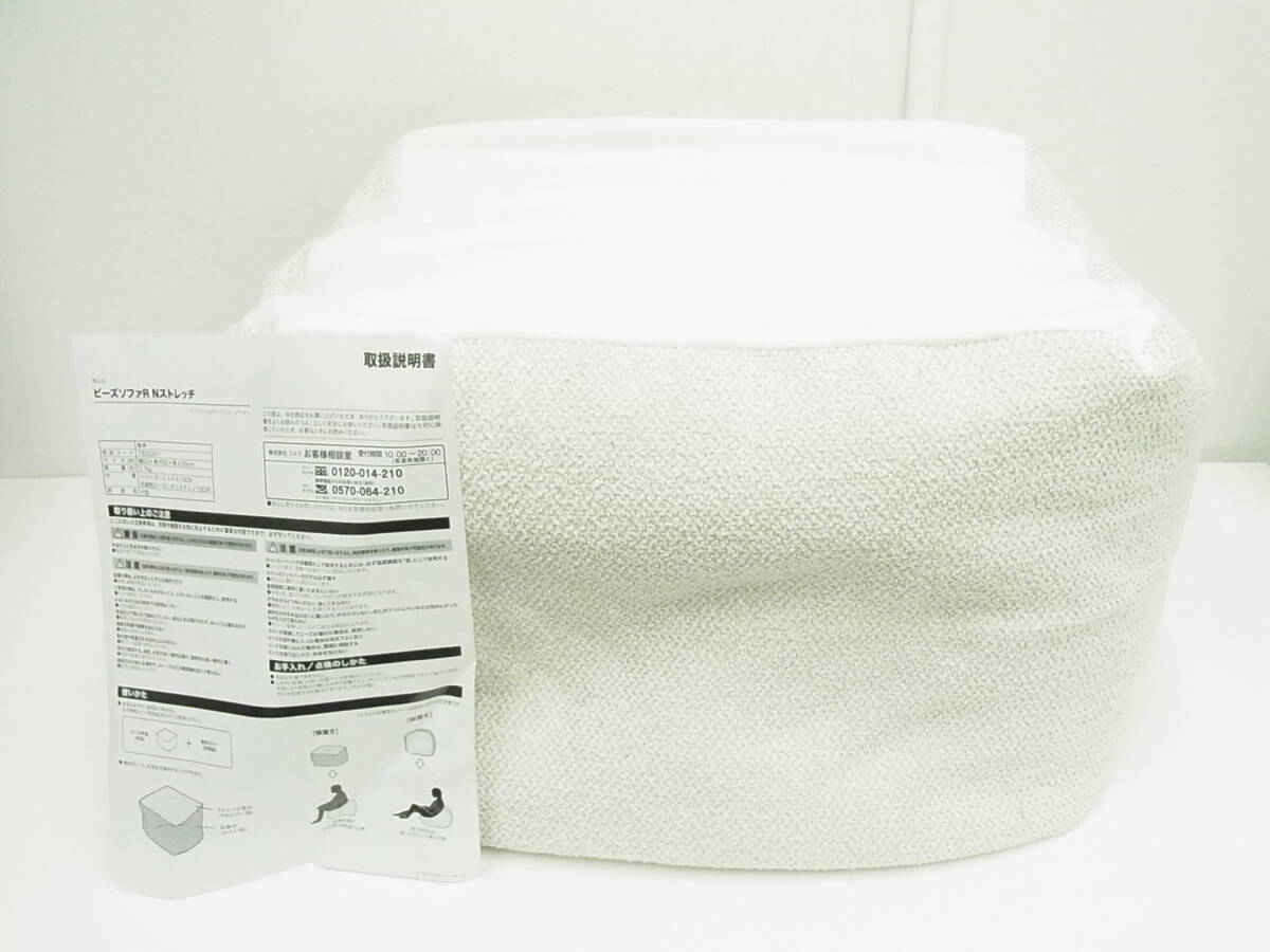 > インテリア祭 ニトリ ビーズソファ 標準サイズ NO.7805261 Nストレッチ ベージュ×ホワイト 幅50×奥行50×高さ35 2.7kg 中古品