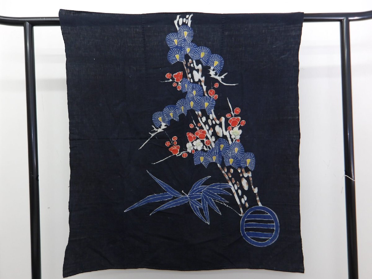 - 〔楽布〕P40443 昔の 筒描き 木綿 風呂敷 108cm×99cm 古布古裂 k