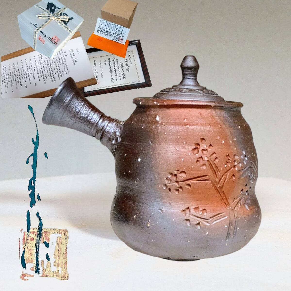 - (N10−8)彫文梨皮急須 茶道具 焼締 無釉 茶壺 煎茶器 美品 新作物 作家物 一点物 常滑 万古 備前 煎茶道具 ティーポット