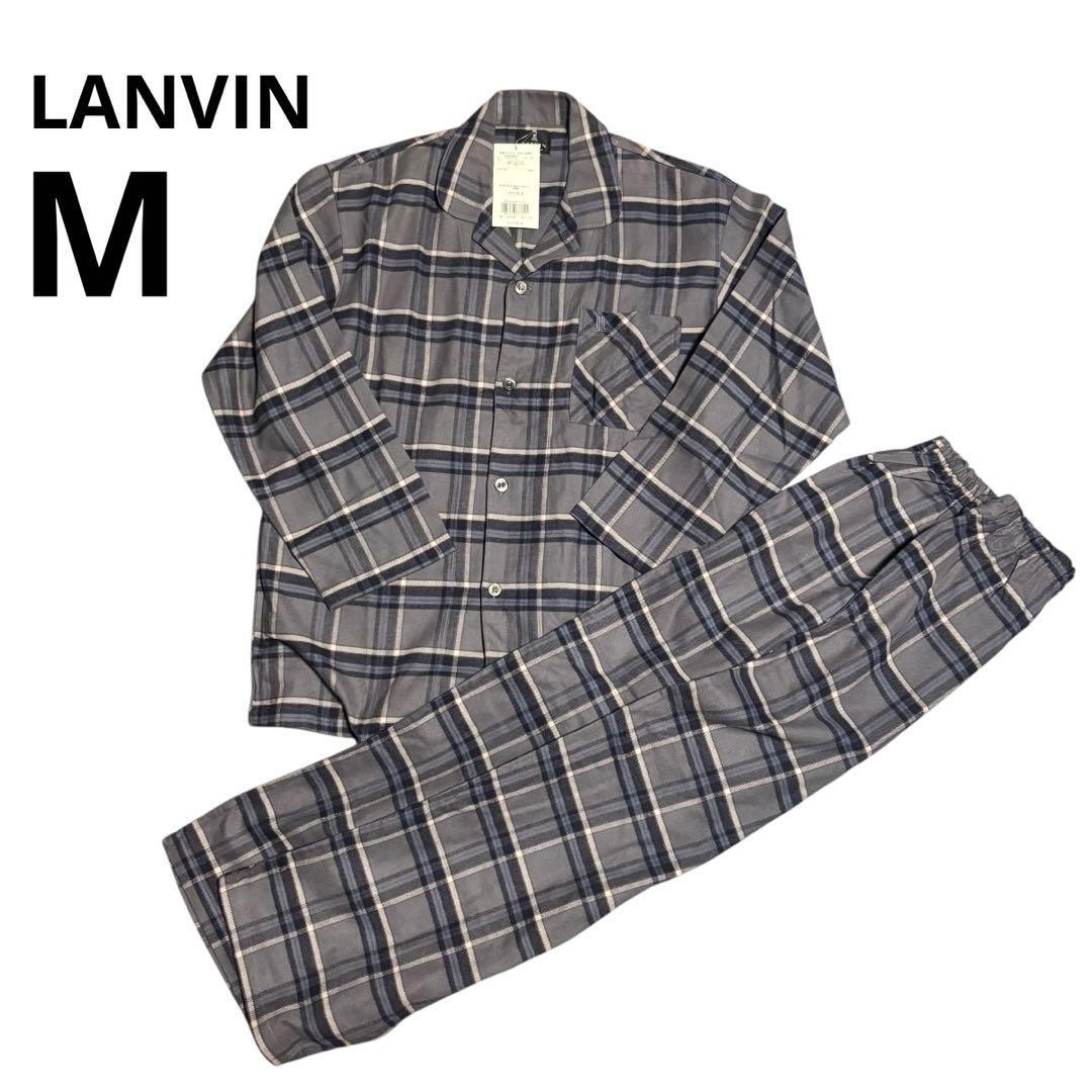 - 【新品未使用】LANVIN ランバン グレー系チェック柄 長袖パジャマ Mサイズ