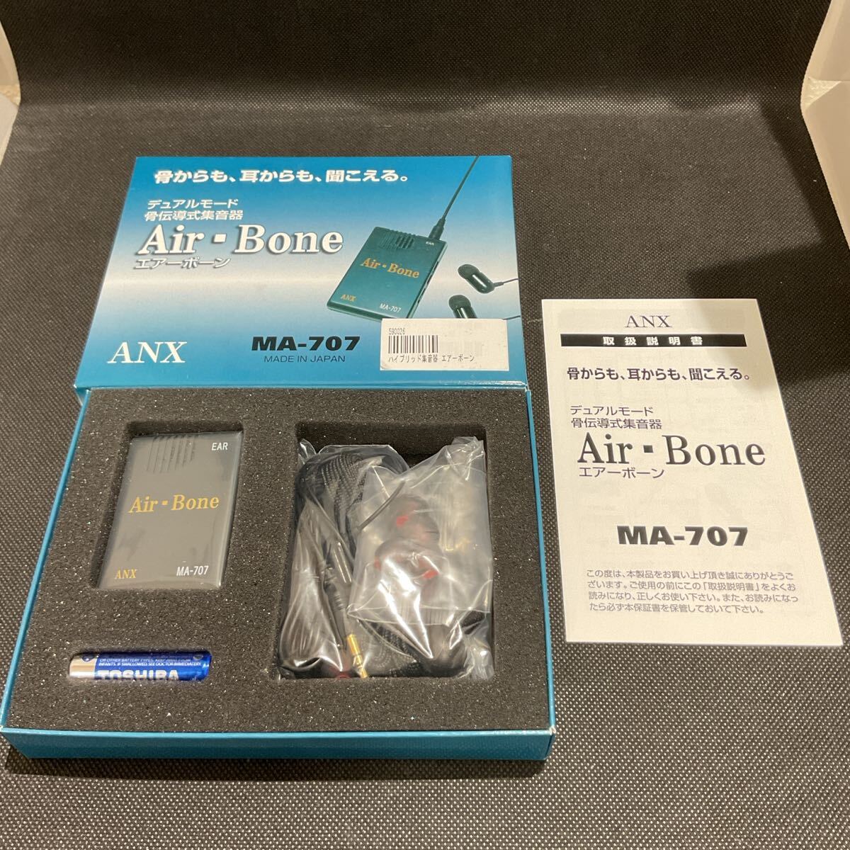 - 【P-3086】AirBone 骨伝導式集音器 エアーボーン ANX MA-707 付属品、箱あり