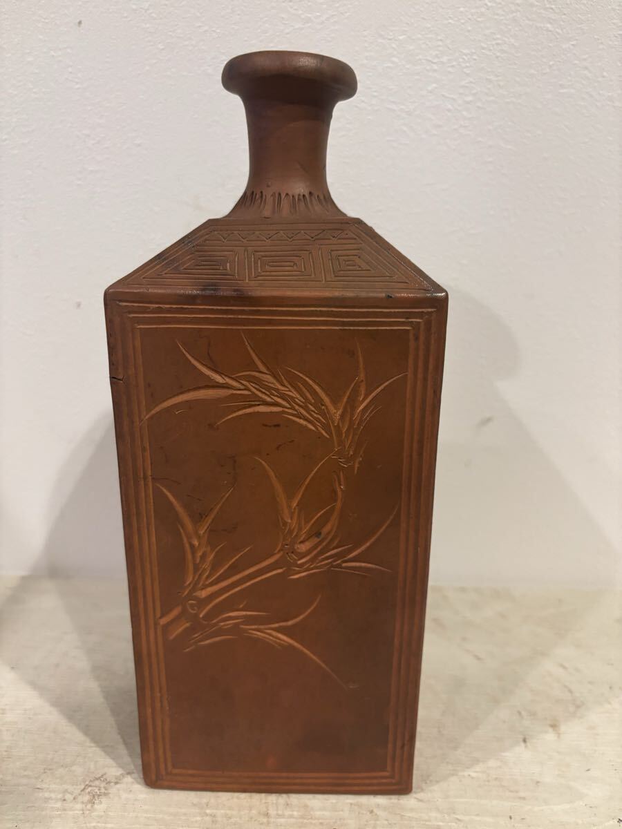 - 備前焼 角徳利 一輪挿し 時代物 0356