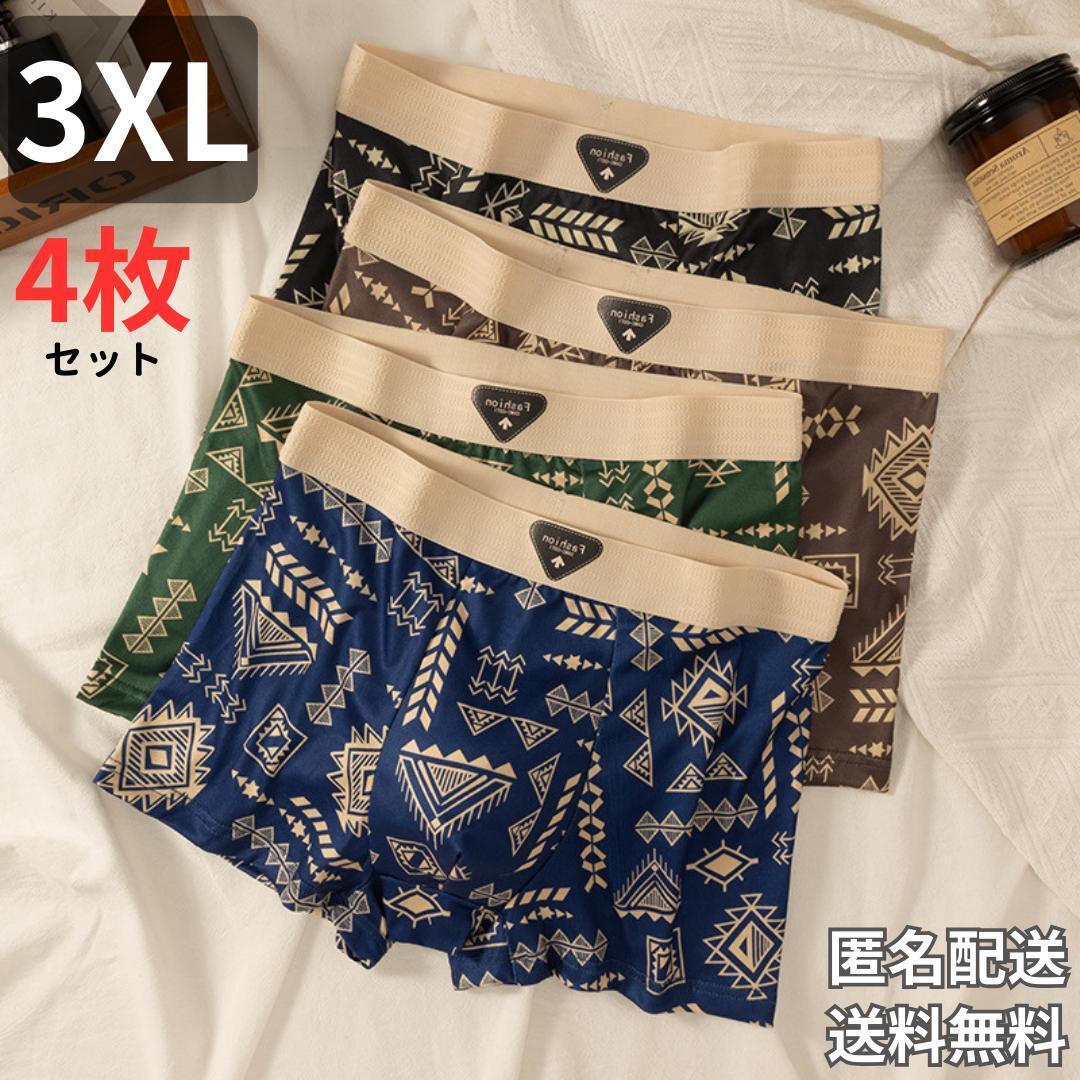 - メンズ ボクサーパンツ 4枚セット 3XL ネイティブ柄 下着 前閉じ パンツ おしゃれ アンダーウェア