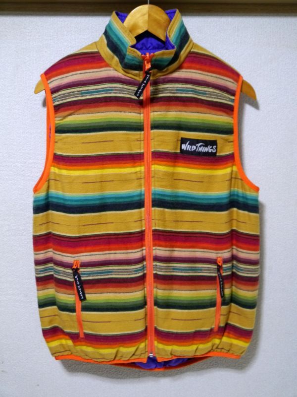 - 美品 ワイルドシングス WILDTHINGS プリマロフト ベスト ネイティブ ボーダー柄 リバーシブル S 男性用 メンズ 計 ab935