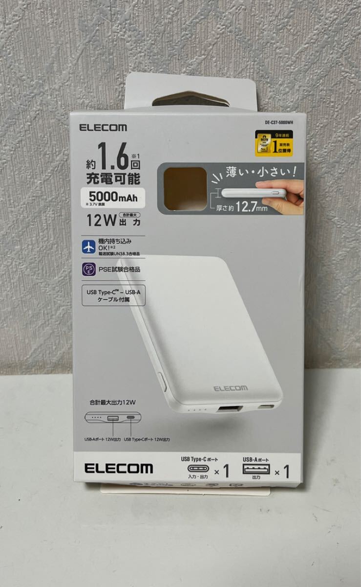 > 710i0503 エレコム モバイルバッテリー 5000mAh 12W コンパクト 薄型 軽量 入力(Type-C×1) 出力(Type-C×1、USB-A×1) PSE認証