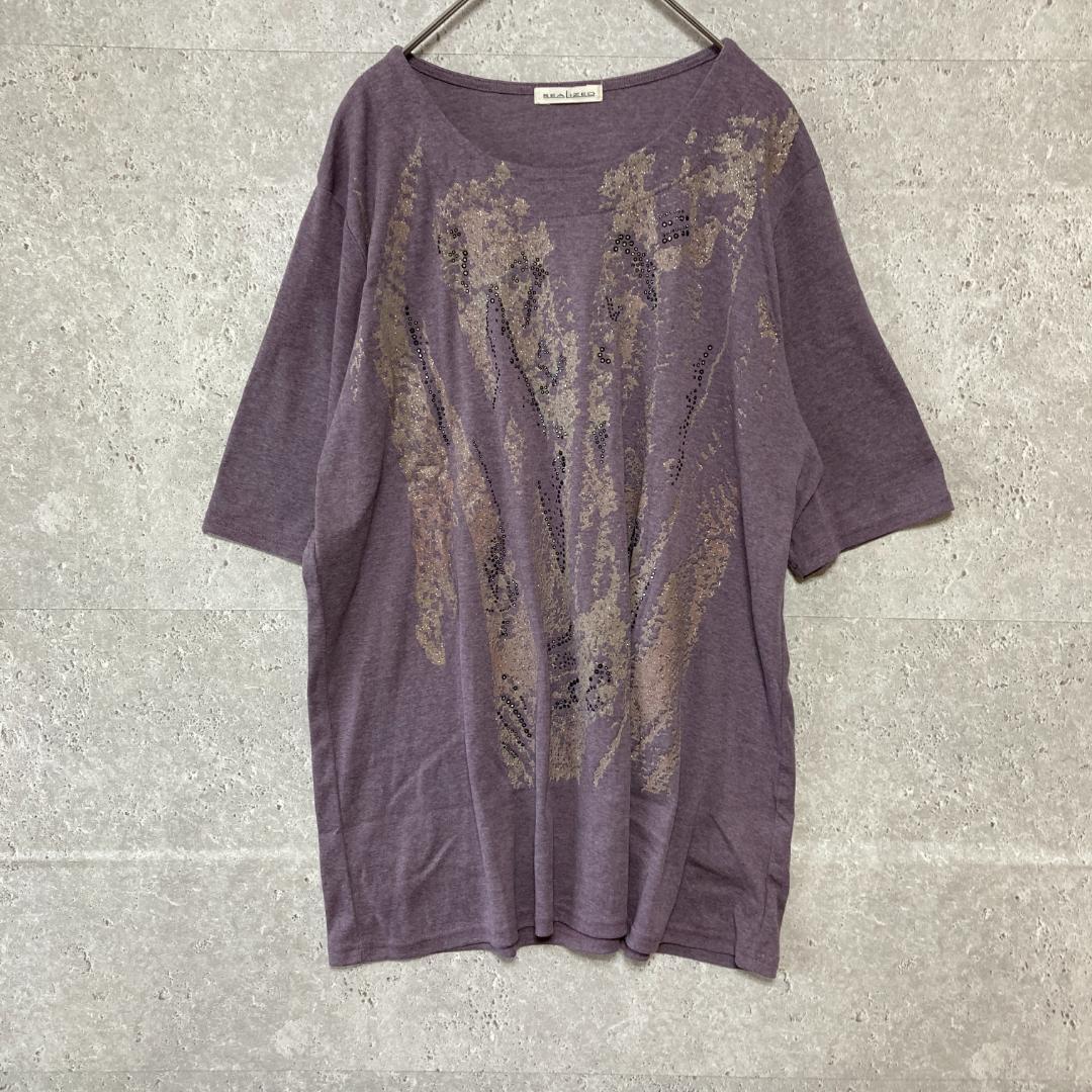 - REALIZED(one)ビジュー半袖Tシャツ*ビックプリント*伸縮性*パープル