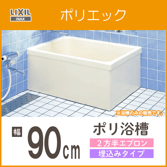 - ポリバス ポリ浴槽 ポリエック FRP浴槽 幅90cm 2方半エプロン 埋込タイプ PB-901BL,PB-901BR リクシル イナックス LIXIL INAX