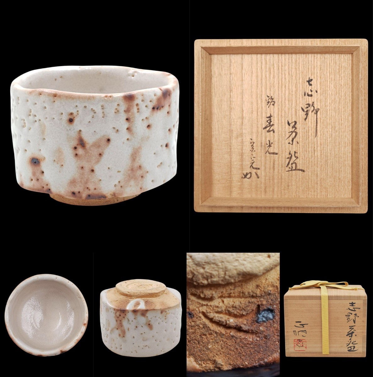 - ≪茶道具≫ 表千家【堀内宗完(兼中斎) 書付】【中島正雄 作】『志野 茶碗・銘 春光』底部在印 桐共箱 共布 栞 真作保証 岐阜県