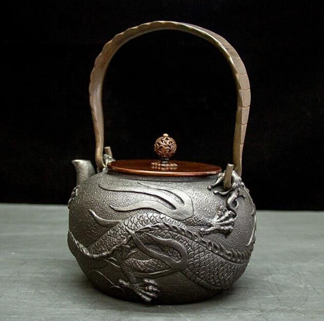 - 老鉄瓶 提梁壺★茶道具 銅製蓋 銅製取っ手 対応 鉄やかん 鉄分補給 鉄びん