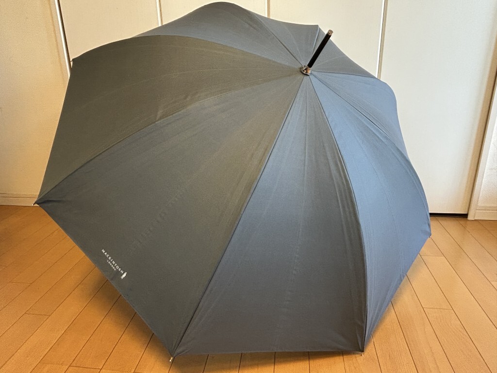 - ☆送料込み☆新品☆マッキントッシュ/紳士長傘ジャンプ傘65cmワンタッチ雨傘/内側チェック柄ワンポイントロゴマーク/濃いカーキグレー