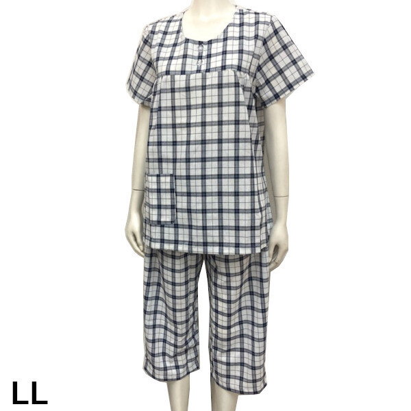 - 即決新品 レディース 半袖 7分パンツ 上下 ルームウエア オフホワイト チェック LL パジャマ 送料無料