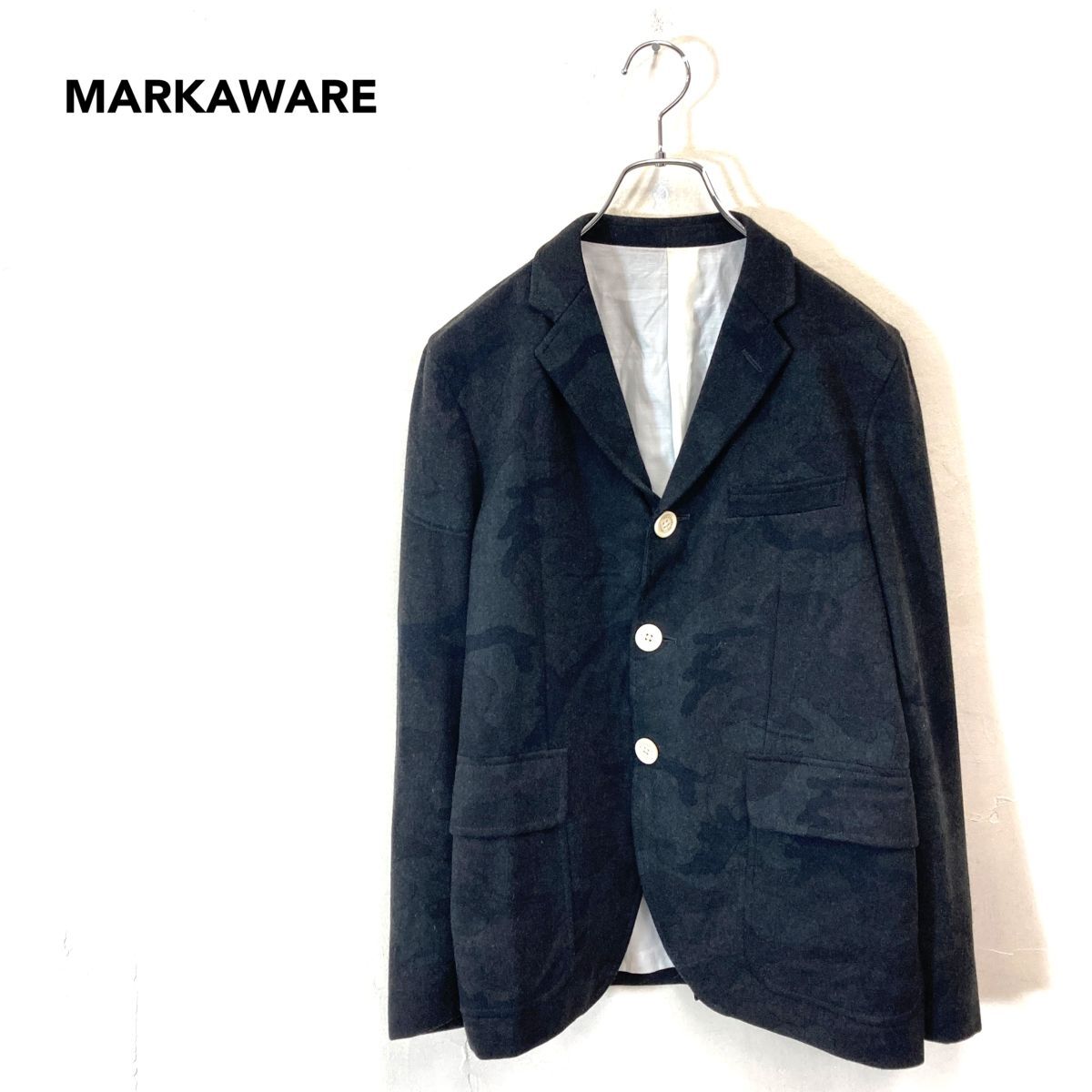 > 2O1198-Q◆MARKAWARE マーカウェア テーラードジャケット 迷彩 3B センターベンツ 総裏 メンズ 紳士◆size 1 黒 ブラック ウール ナイロン