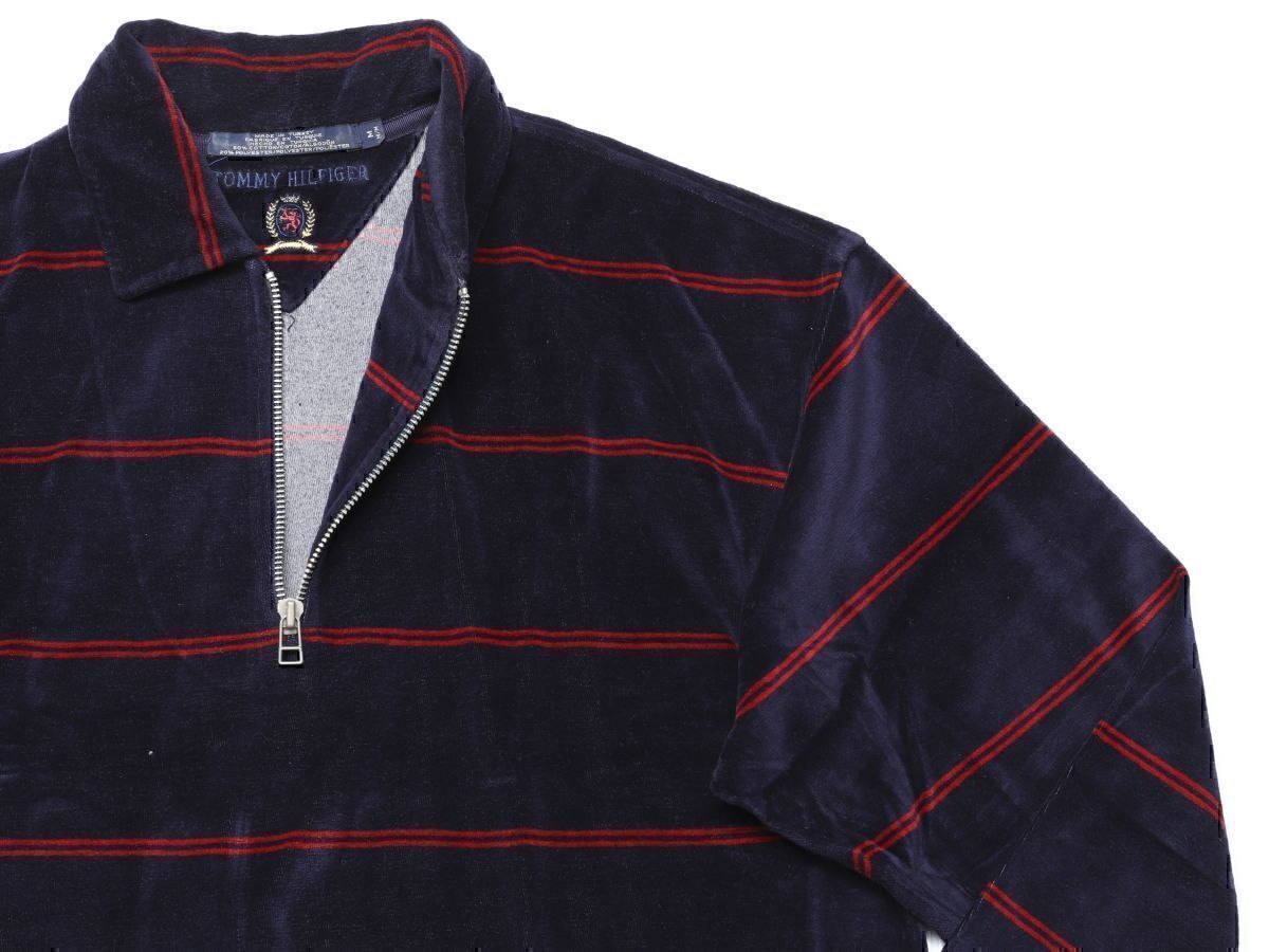 > 1円★美品★TommyHilfiger トミーヒルフィガー★パイル地ジップアップボーダーラガーシャツ★M【0207016-21112U】ネイビー紺【本物保証】