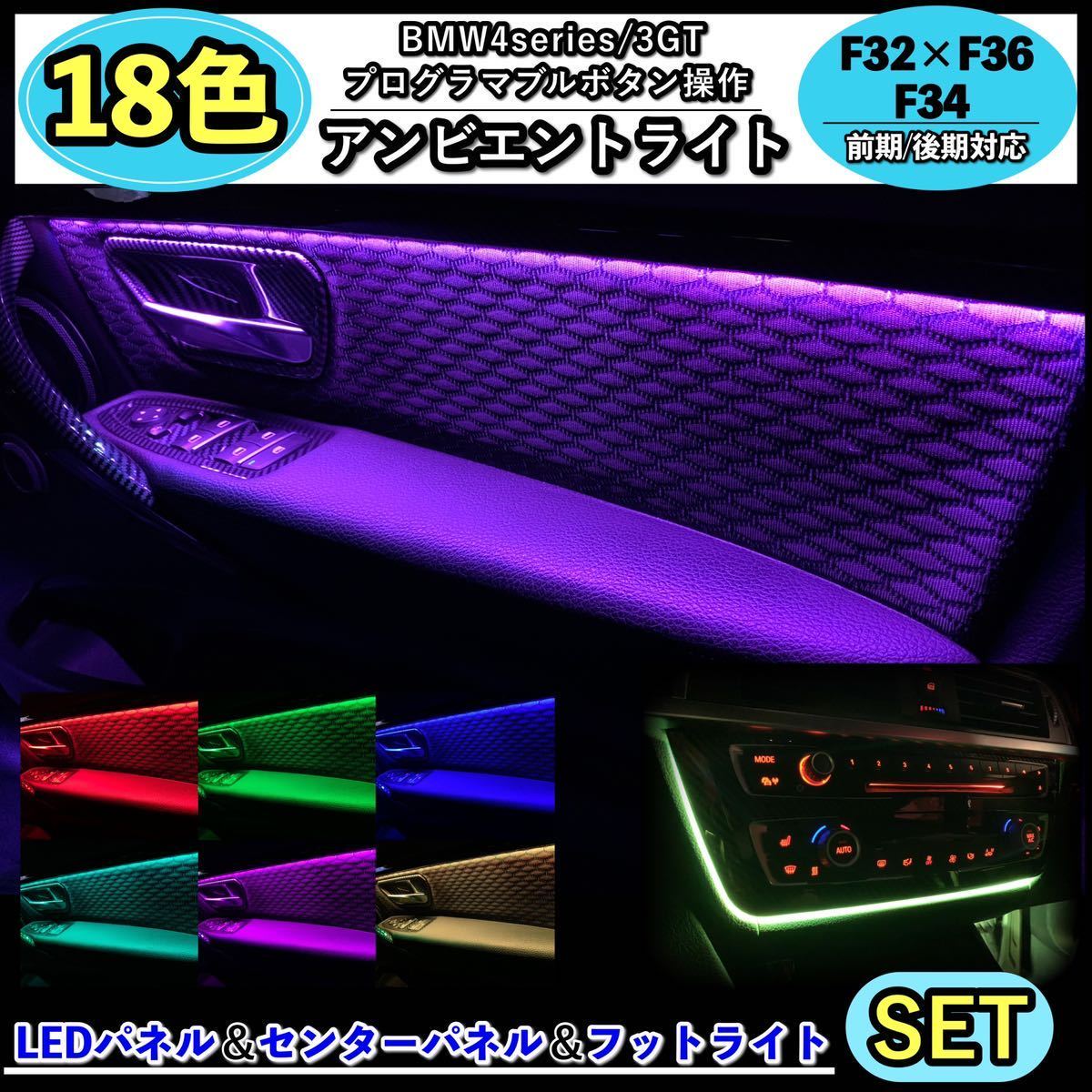 > BMW F32/F36/F34 4シリーズ 3GT 18色アンビエントライト LEDドア+センターパネル+フットライトセット 説明書付き カーボンカラー