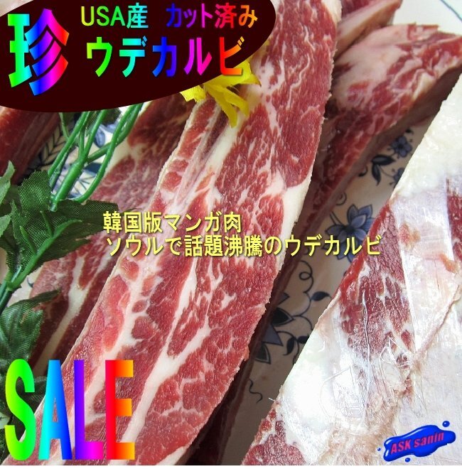> USA産「ウデカルビ3本で1kg」スライス済、筋も美味!!...ショート・リブ・カット