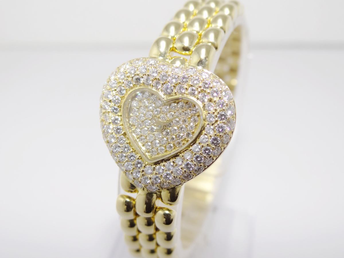 > ★質屋★K18ショパール/ダイヤ/クオーツ/ハート/金無垢/約56.7g/レディースモデル/メーカーOH済↑