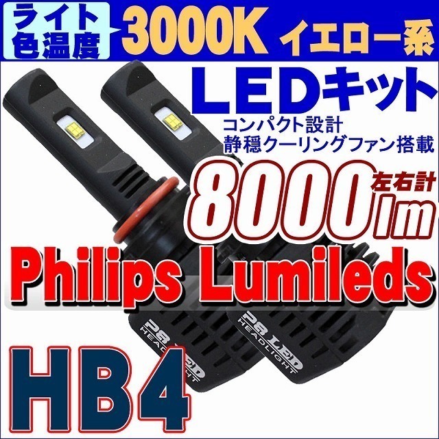 - 【3000K】フィリップスLEDキット 8000lm(左右計) HB4 静音省スペースファン ヘッドライト フォグランプ 12V/24V