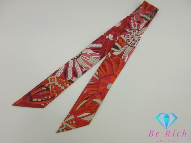 > エルメス HERMES ツイリー スカーフ LES FLOTS DU CHEVAL 馬への表彰 シルク 絹 赤 レッド系 マルチカラー リボン ストール【中古】bh2633