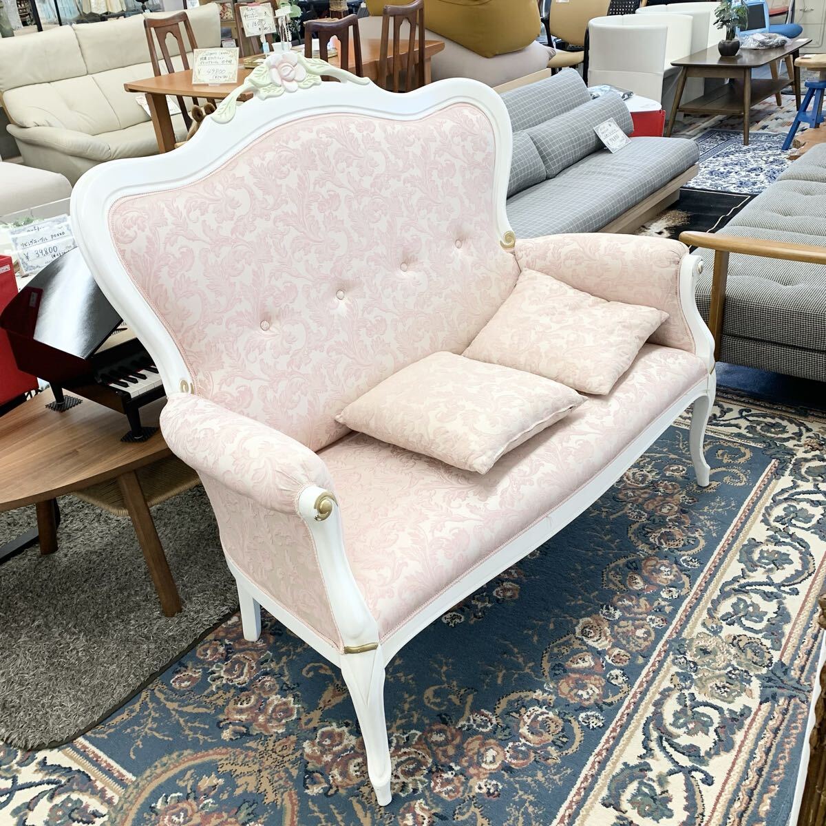 > ロココ調 2人掛けソファ ピンク アンティーク家具 クラシック 布張り 869