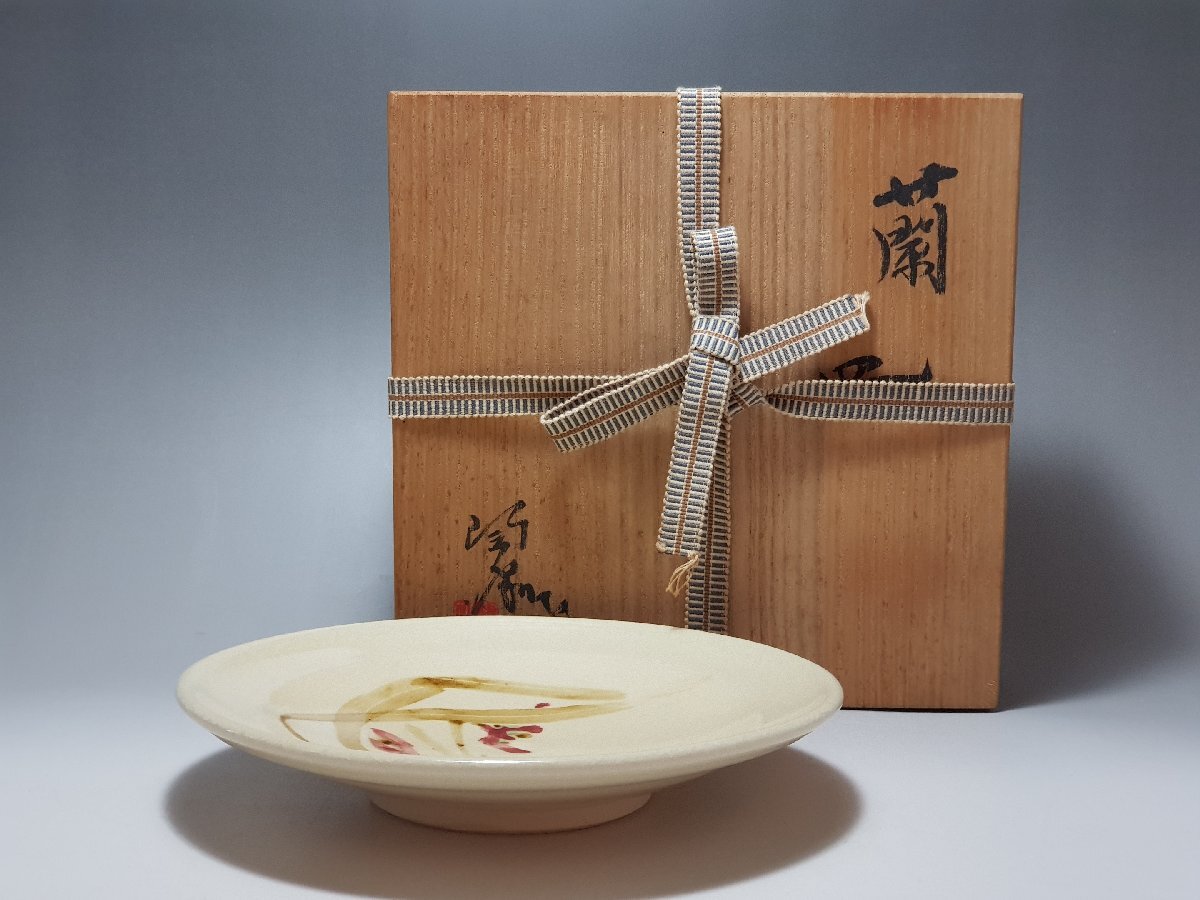 > 色絵 蘭紋 皿 作家物 共箱 幅約18.4cm / 小盤 小皿 手塩皿 浅盤 陶瓷器 唐物 古玩 古董