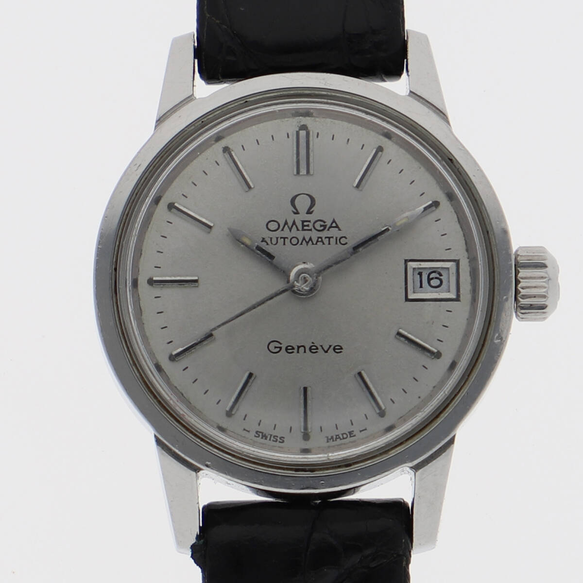 > OMEGA オメガ ジュネーブ シルバーダイヤル SS/レザー 自動巻き レディース【136324】