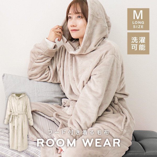 - 着る毛布 フード付き Mサイズ ロング ルームウェア 洗える あったか かいまき毛布 部屋着 パジャマ おしゃれ レディース メンズ 北欧 厚手