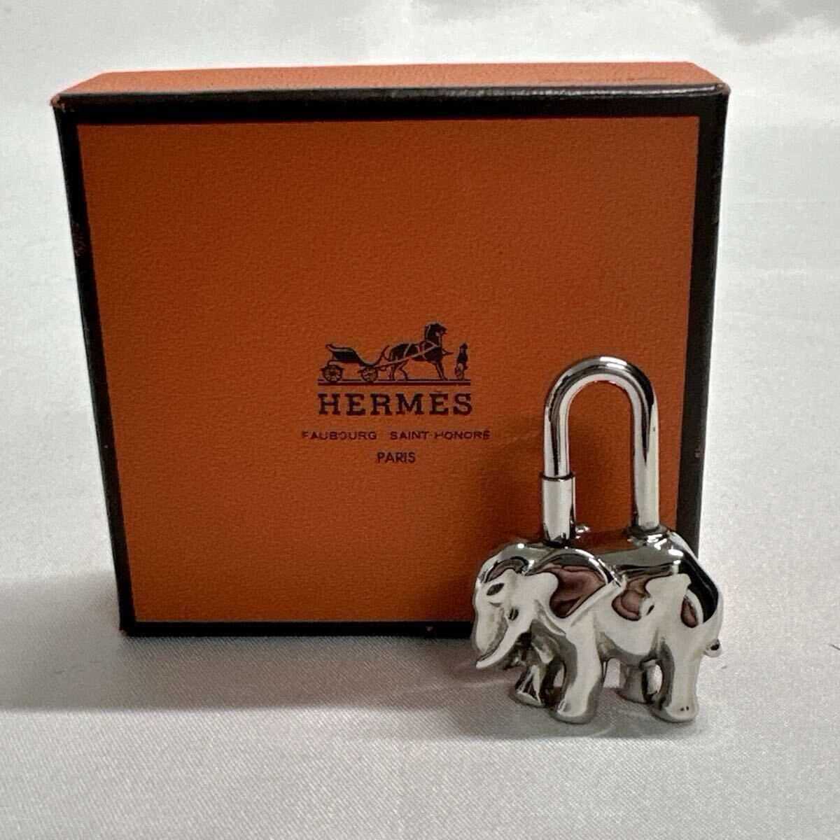 - 美品!HERMES エルメス カデナ 南京錠 エレファント 象 チャーム キーホルダー 鍵 シルバー アクセサリー 箱付【1307】