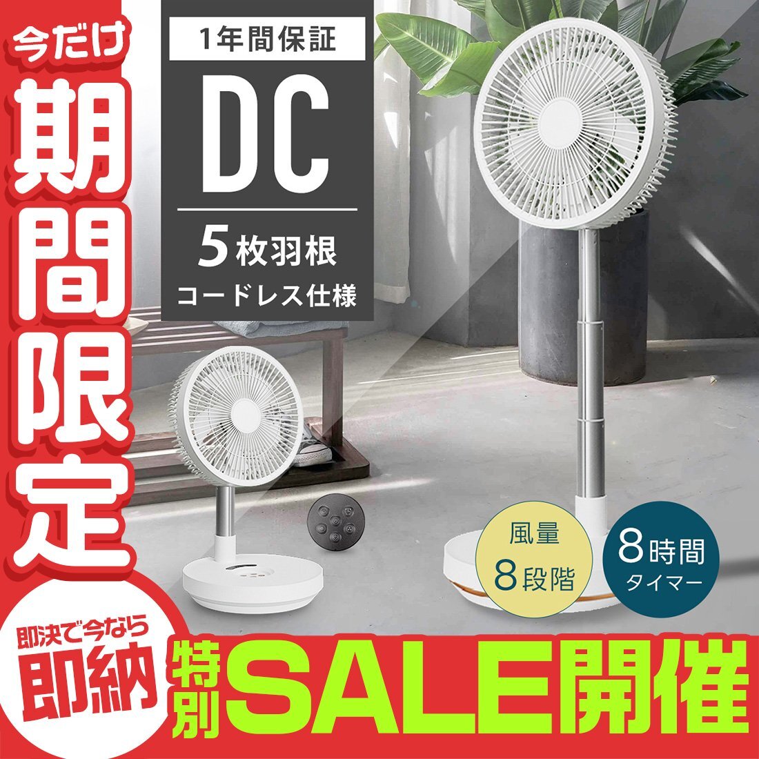 > 【数量限定セール】扇風機 折りたたみ DCモーター サーキュレーター 風量8段階 首振り 静音 リモコン コードレス 充電式 省エネ 小型 卓上