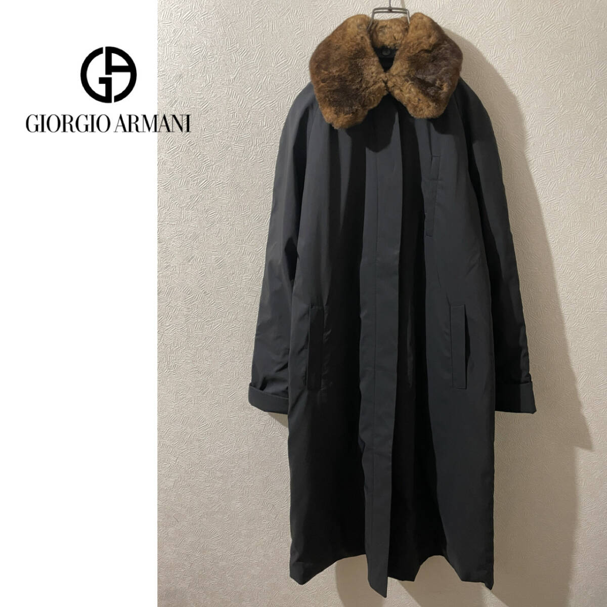 - ◯ イタリア製 GIORGIO ARMANI CLASSICO × Loro Piana ミンク カラー ステンカラー コート / クラシコ ロング 黒 36 Ladies #Sirchive