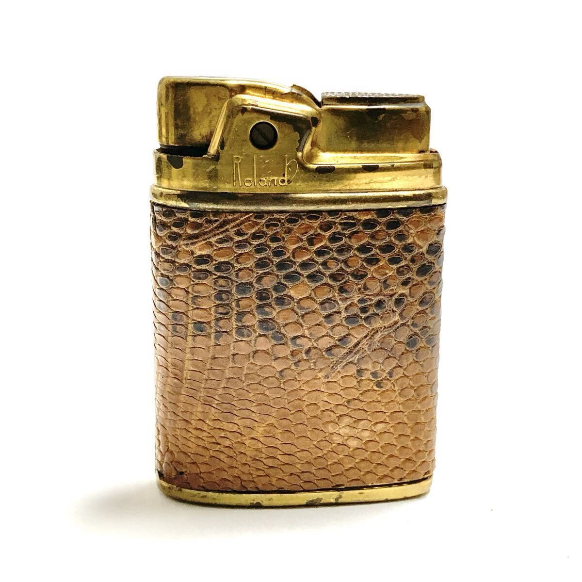 - 当時物☆Rolandローランド☆オイルライター ヴィンテージ 皮巻き レザー ゴールドカラー アンティーク 喫煙具 昭和レトロ