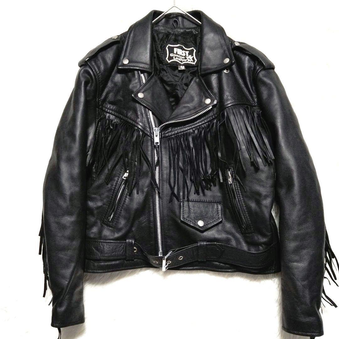 - 激レア FIRST 本革 フリンジ ダブルライダース ジャケット 44