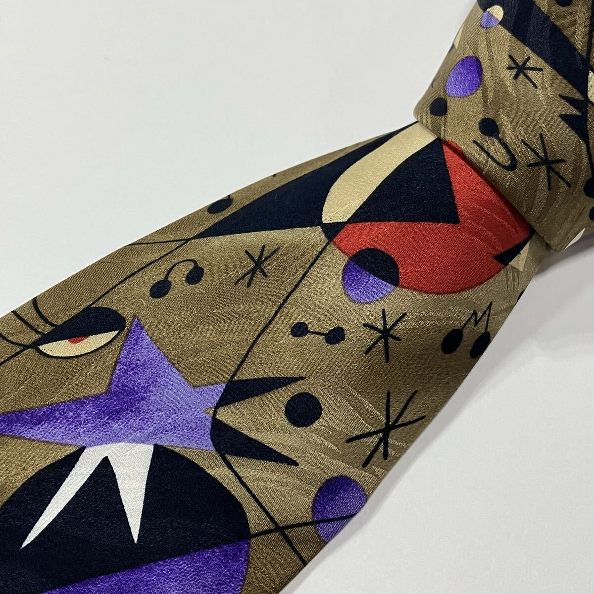 - アート シルク ネクタイ 古着 ゴールド 598-7