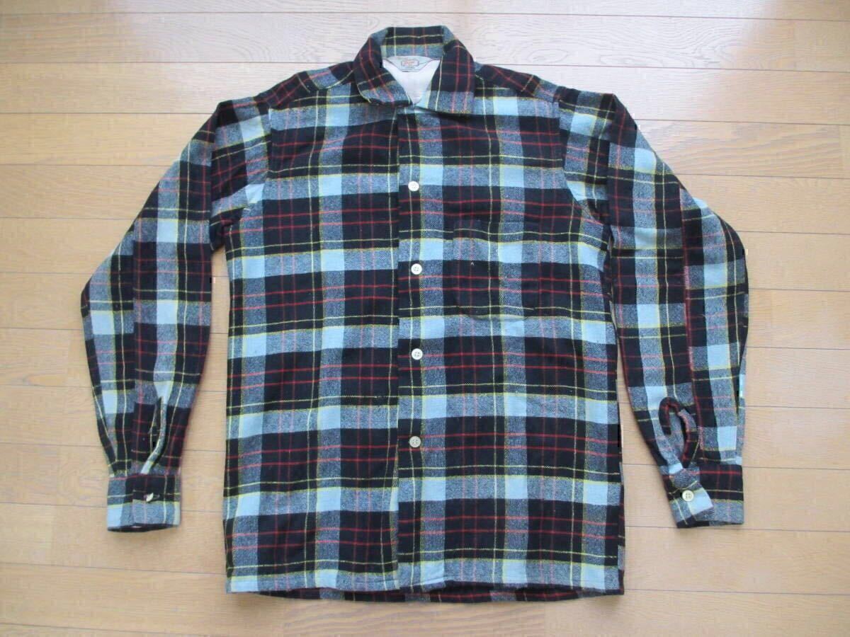 > 50S~60S 50年代~60年代 ヴィンテージ ビンテージ BRENT ブレント ウール オンブレ チェック 黒 ブラック シャドー 袋襟 ボックス ループ