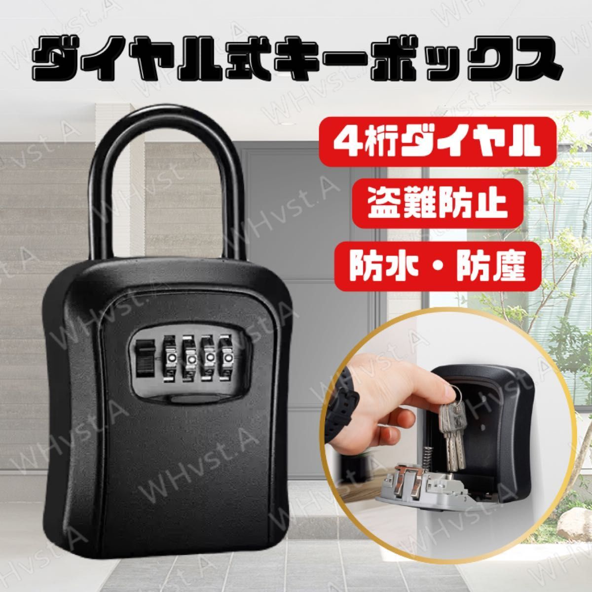 - キーボックス ダイヤル式 4桁 大容量 壁掛け 防犯 盗難防止 防水 耐久性 収納 管理 ブラック