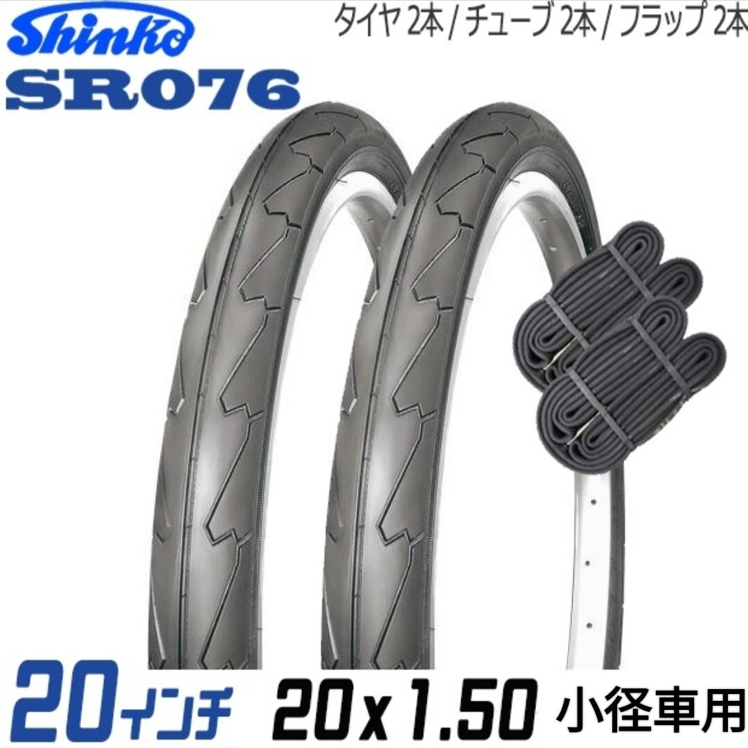 > 自転車/タイヤ【2本セット/20×1.50】20インチ/タイヤ×チューブ×リムバンドの各2本セット/黒×黒/シンコー/ブラック/SR076/小径車