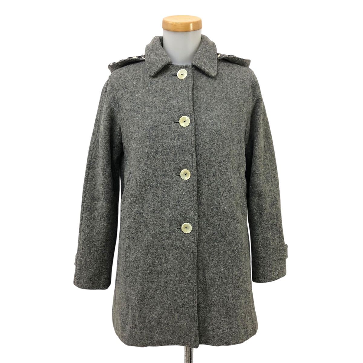 > 10m661-60 USA製 Steven Alan スティーブンアラン ステンカラー ウール Aライン ショートコート コート フード 羽織り アウター グレー XS
