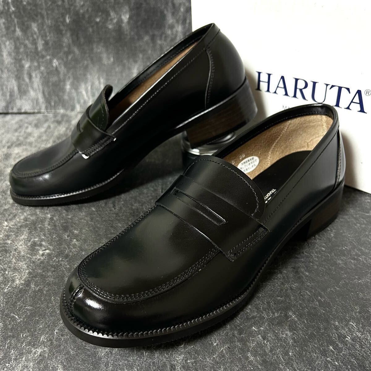 > 【未使用/大きいサイズ】¥10450- HARUTA ハルタ #545 コインローファー ブラック レディース size25 (ゆったり3E) *1A