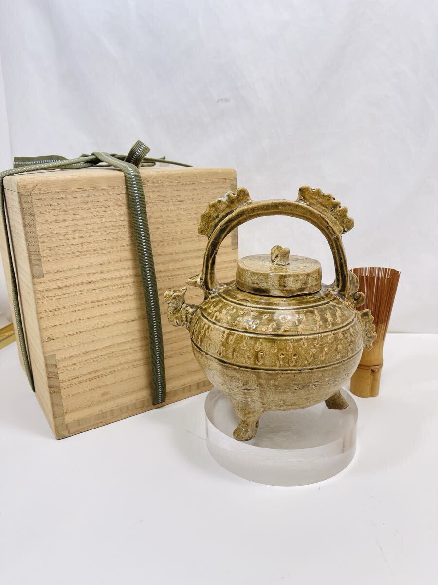 > 【B136】元時代?青釉 谷紋 水注 共箱付 茶壺 水注 急須 壷 德利 茶道具 煎茶道具 古賞物 置物 飾り インテリア 時代物 中国古美術
