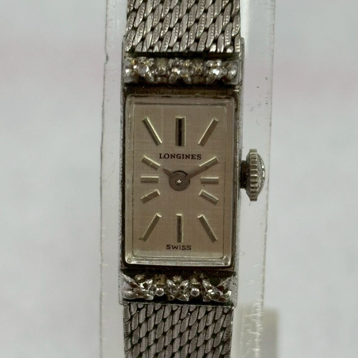 - E440-D1-2198◎ LONGINES ロンジン 手巻き シルバー文字盤 スクエア 2針 レディース 腕時計 稼動 OA