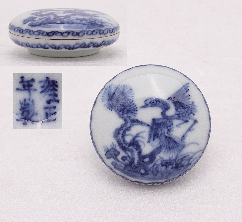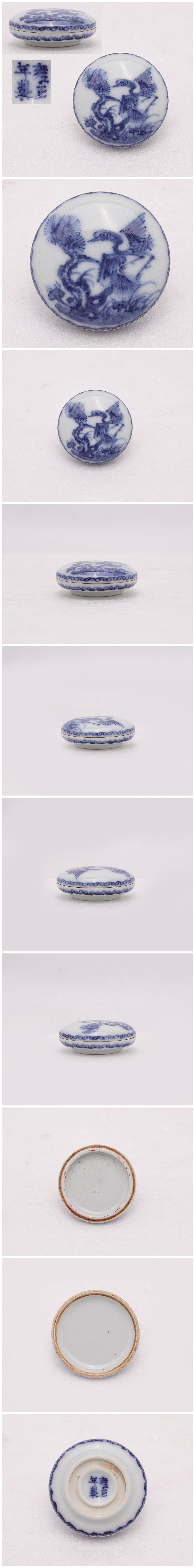 - 250900 唐物 染付 雍正年製 鳥紋 印合 印泥 朱肉池 書道具 中国美術
