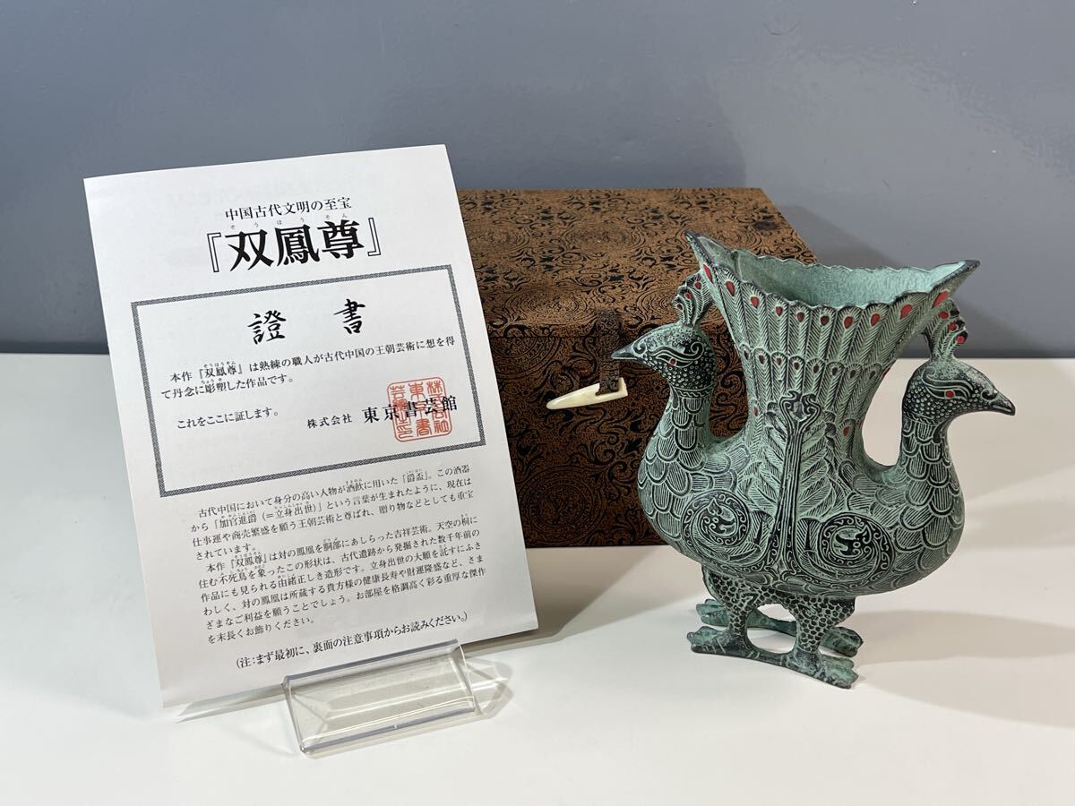 - ◆ 中国古代文明の至宝 双鳳尊 そうほうそん 証明書付き 爵盃 酒器 鳳凰 吉祥芸術 商売繁盛 贈り物 青銅器 骨董品 置物 現状品 管理KA482