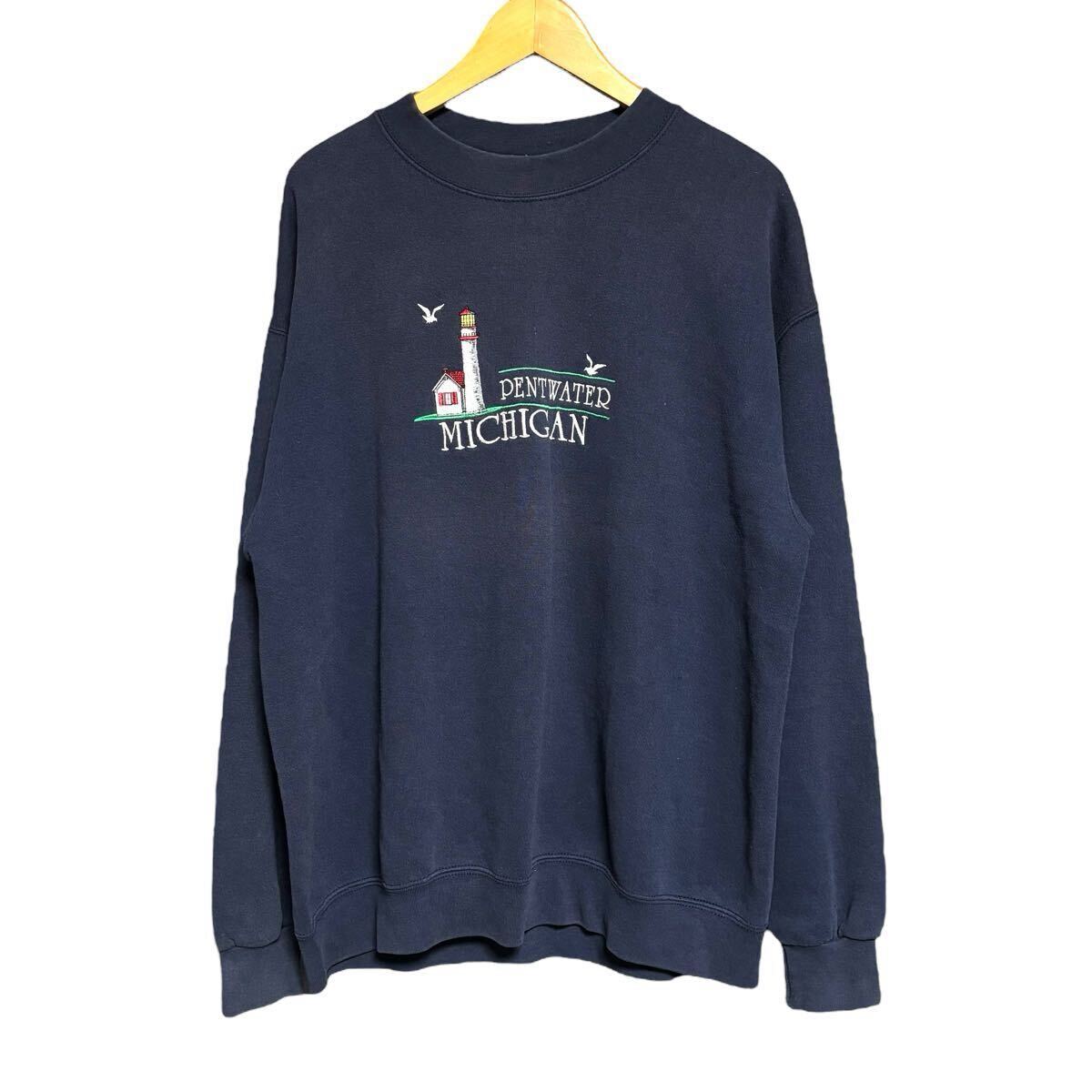 - ※KS Lee リー 長袖スウェットトレーナー ネイビー×ホワイト アメリカ製 刺繍 綿 ポリエステル メンズ サイズL